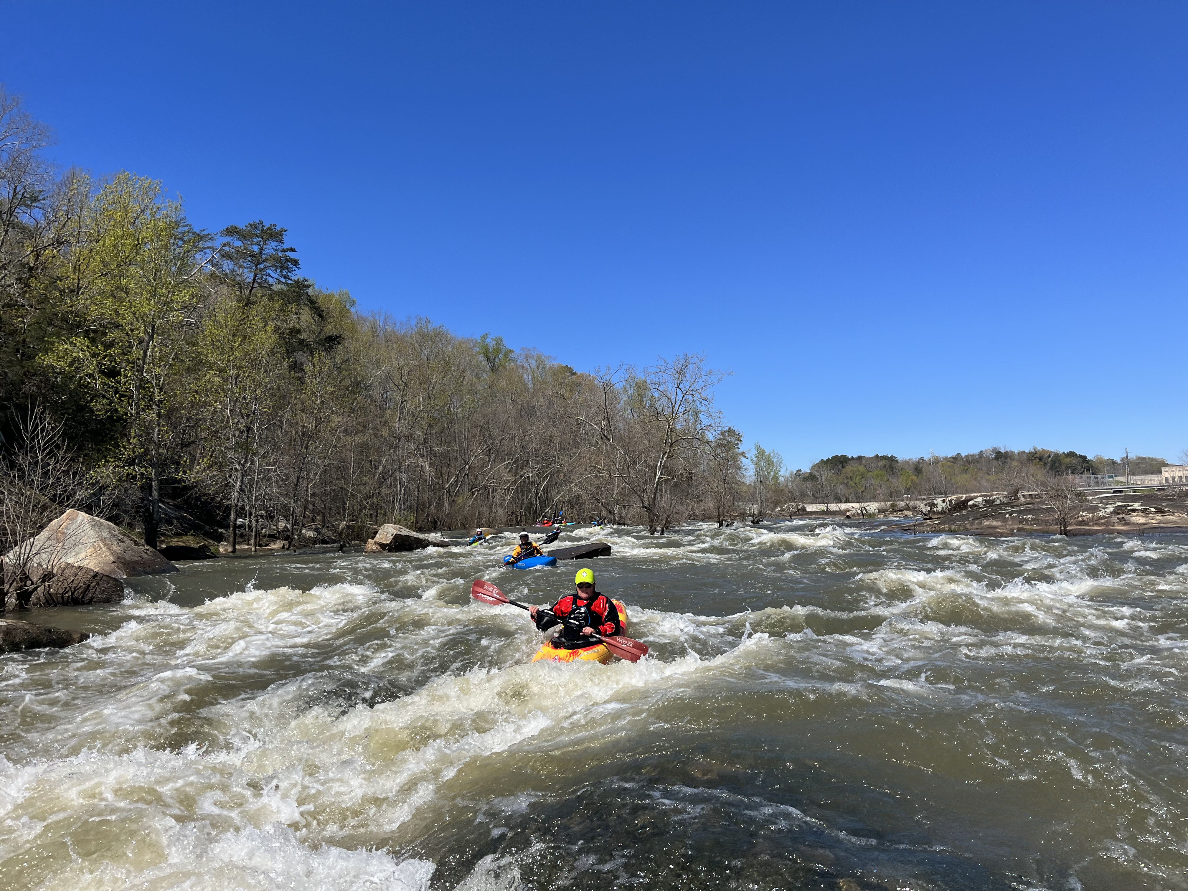 Great Falls of the Catawba: The remnants of the Great Falls of the Catawba have been dewatered since 1907, but in two years will begin flowing continuously. The falls are actually class II-III rapids featuring some epic play waves, a beautiful and protected river corridor, interesting geology, and a lowland ecosystem uncommon among whitewater rivers. As a result of the agreement the Falls has a new base flow every moment of every day, as well as 22 days of scheduled boating flows on the long channel and 28 days on the short channel. The Falls area is also getting a new state park, significant land conservation, several river access areas, and new flow information. We hope that all this will revitalize the Town of Great Falls, which have been great to work with on this issue. In addition to these two reaches, additional recreational and environmental enhancements will be provided throughout the basin.